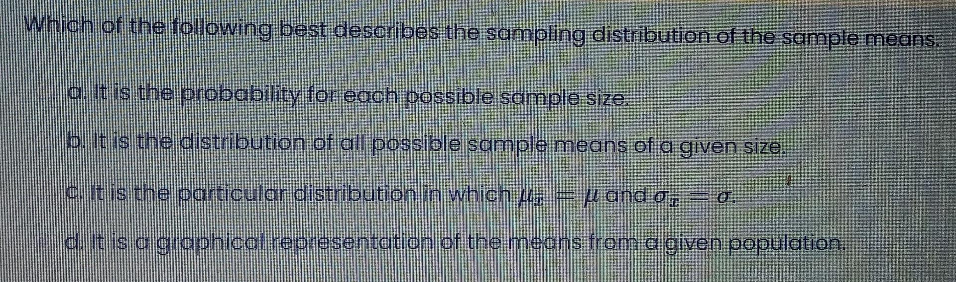 Solved Which Of The Following Best Describes The Sampling Chegg Com